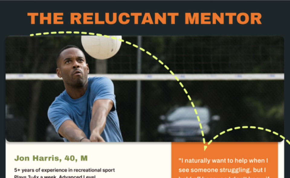 The specific task tested focused on The Reluctant Mentor persona seeking a new and qualified player to join his competitive tennis team. This required participants to fall under “High Intermediate-Advanced” level rec. players.
